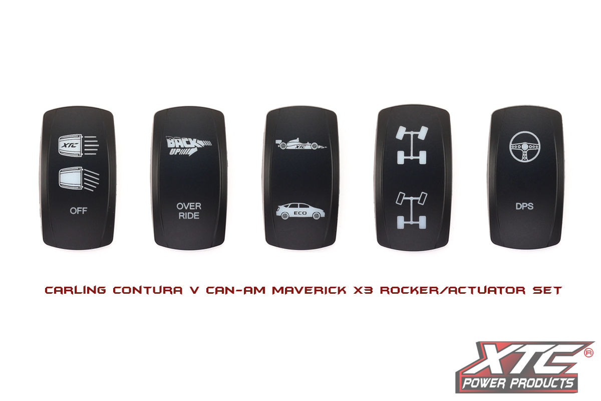 Can-Am Maverick X3 replacement Factory Rocker Switch Covers. These Rocker covers replace the X3’s factory rocker switch covers to keep a consistent looks when adding a XTC Power Control System to your UTV