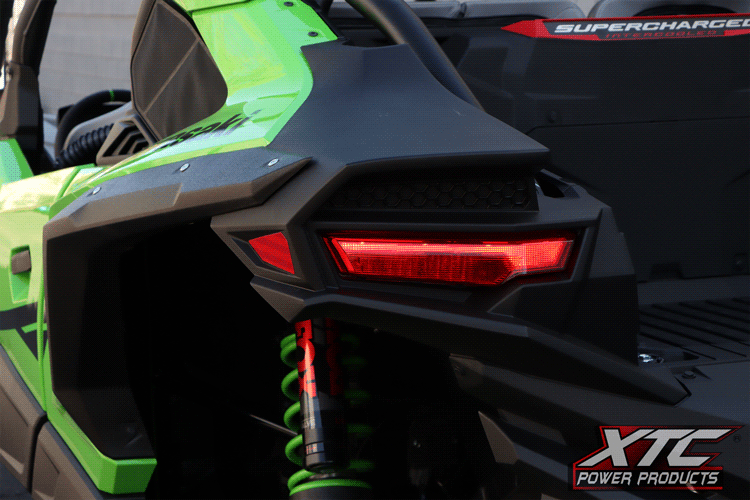 Also included in our Self-Canceling Kawasaki Teryx H2 turn signal kit is a ‘Hazard/Horn’ rocker switch. Pressing the top ‘Hazard’ side of the actuator will turn on the hazard lights, pressing it again deactivates them. Furthermore, pressing the lower portion of the custom rocker switch will activate the included street legal FIAMM horn. Each ATS has a vehicle-specific harness that plugs inline with the rear factory taillight harness. The brake light signal passes through the ATS. As a result, the opposing brake light still functions normally while the activated turn signal brake light flashes.