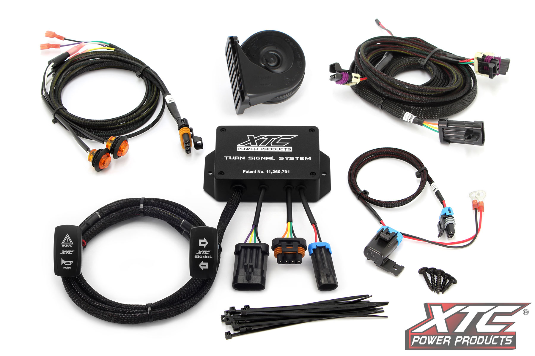 XTC Power Products Leads the way in UTV wiring. Installing turn signals on a UTV is easier than ever with our Plug and Play Turn Signal System for the 2013-18 Polaris Ranger. The TSS (Turn Signal System) consists of a relay control box and horn that mounts under the hood and turn signal, and custom hazard/horn switches that mount in the dash. A supplied vehicle-specific rear harness integrates into the Polaris Rangers OEM taillights converting them to turn signals.